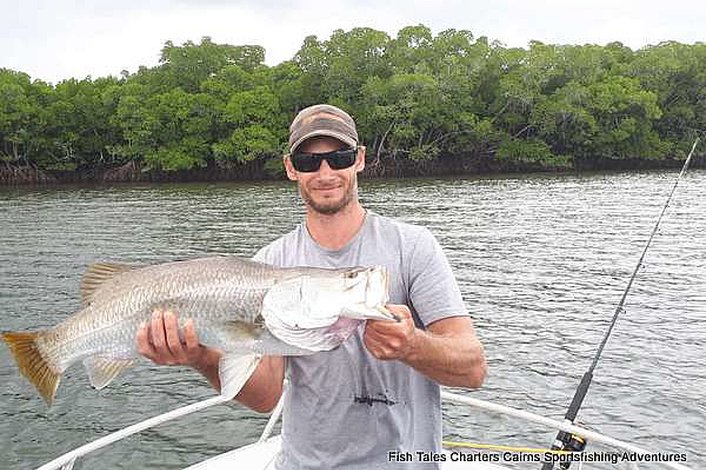 Common caught species are....Grunter (Javelin Fish), Fingermark, Blue Salmon, GT-Trevally, Mangrove Jack, Queen Fish (Queenies), Thread Fin, Blue Salmon, Estuary Cod, Bream, Flathead, Golden Trevally, Tarpon, Hairtail, Mud Crabs and much much more....The prize catch of a Barramundi. (Fish Species are Seasonal).