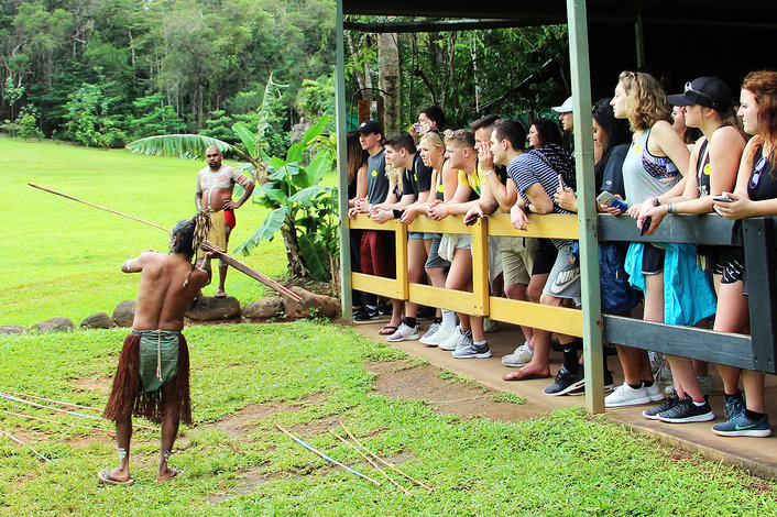 The Pamagirri Aboriginal Experience is unforgettable. Follow the Dreamtime Walk down the Rainbow Serpent pathway, and learn how to throw a boomerang. Our Pamagirri guides will demonstrate traditional spear throwing as well as a didgeridoo presentation, followed by an interactive traditional Aboriginal dance performance.