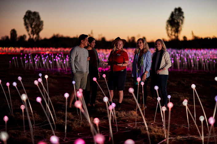 Wander the pathways that encompass the 50,000 spheres of light in the Red Centre desert before making you way to the unique Field of Light sunrise viewing area.