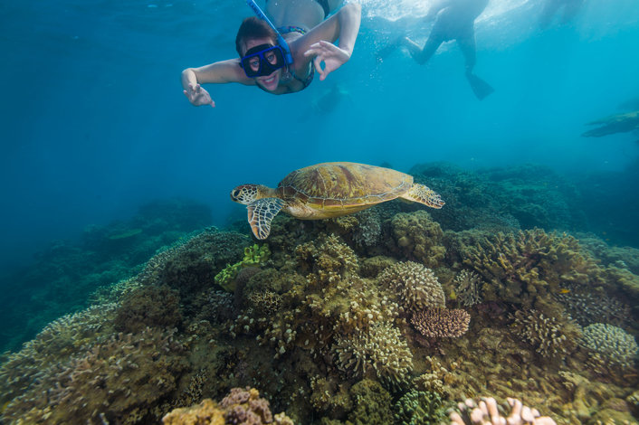 Enjoy a guided snorkelling tour straight from the pristine white sandy beach, where an expert marine naturalist will guide you over colourful corals and tropical fish, explaining this unique and wonderful ecosystem. Choose to explore the fringing reefs further on the adventure snorkel safari that takes you to the other side of the island. Alternatively, stay dry and choose a coral viewing from the semi-submersible or glass bottom boat. Next up is a guided Island Discovery walk that takes in the coral cay forest, sandy beaches and the reef's nursery. Enjoy a tropical buffet lunch served on the island with a choice of fresh local prawns, salads, chicken, ham, cheese, bread and an abundance of fresh tropical fruit.